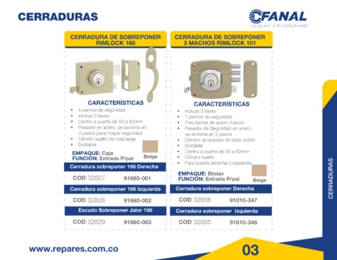 RIMLOCK 166 3 MACHOS RIMLOCK 101